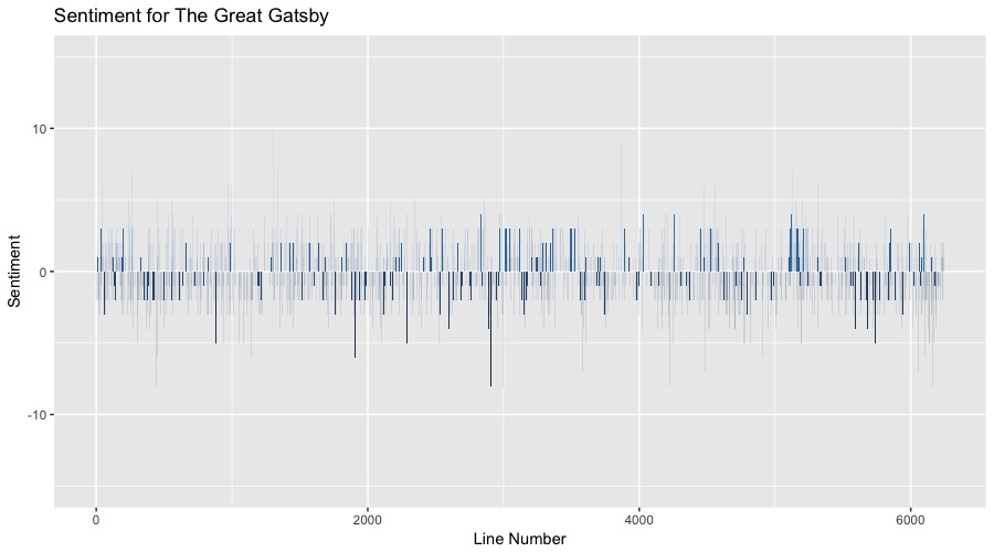 After comparing the sentiments of each of the six novels, I looked into the sentiment per line of the novel to see if required reading novels had similar sentiment patterns to other books by the same author.